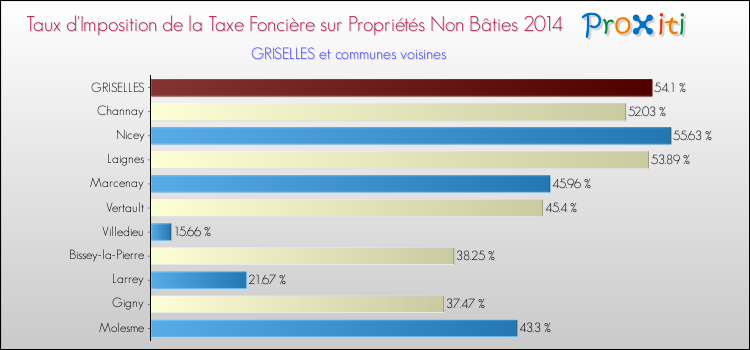 Vous trouverez ci-dessous des graphiques qui vous permettent de situer le taux de la taxe foncière sur le non bâti de Griselles par rapport aux communes voisines.