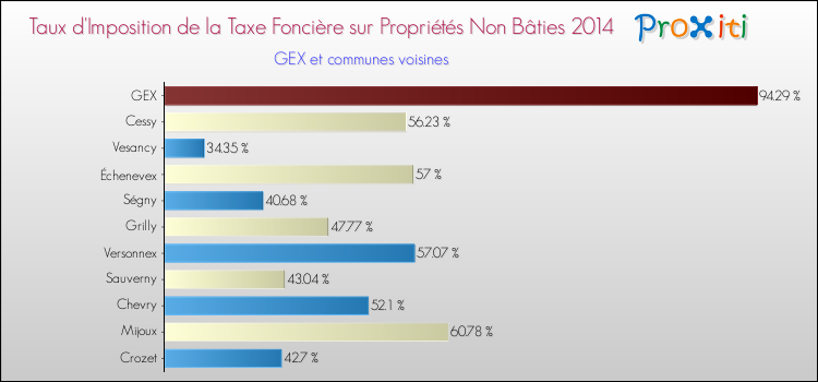 Pendant la même période, les communes françaises similaires à Gex, ont vu leur taux de taxe foncière sur le non bâti augmenter de 27.53 % en moyenne entre 2000 et 2014.