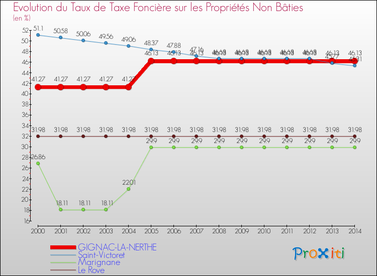 A Gignac-la-Nerthe, le taux de taxe foncière sur le non bâti a ainsi augmenté de 11.78 % entre 2000 et 2014.