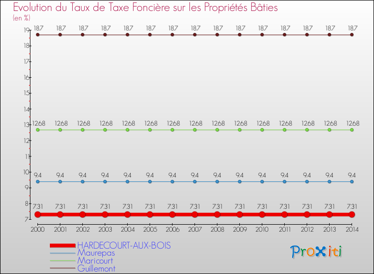 A Hardecourt-aux-Bois, le taux de taxe foncière sur le bâti a donc augmenté de 0 % entre 2000 et 2014.