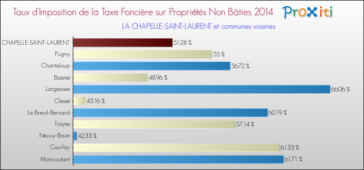 En 2014, le taux de la taxe foncière sur le non bâti vôté par le conseil municipal de La Chapelle-Saint-Laurent était de : 51.28 %.