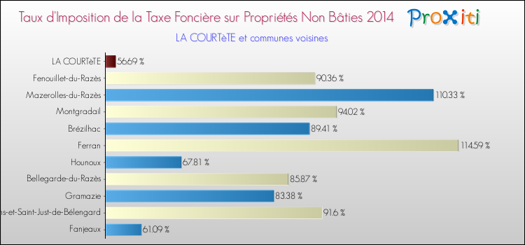 Comparaison des taux d'imposition de la taxe foncière sur les immeubles et terrains non batis 2014 pour LA COURTèTE et les communes voisines