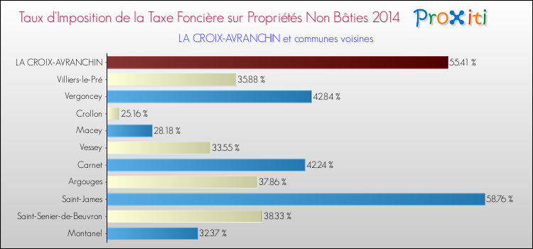 En 2014, le taux de la taxe foncière sur le non bâti vôté par le conseil municipal de La Croix-Avranchin était de : 55.41 %.