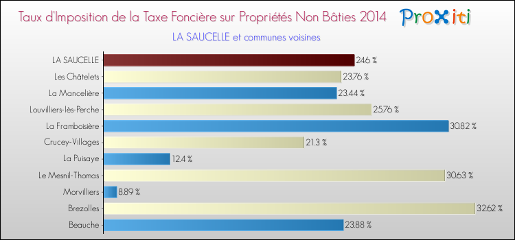Pendant la même période, les communes françaises similaires à La Saucelle, ont vu leur taux de taxe foncière sur le non bâti augmenter de 19.53 % en moyenne entre 2000 et 2014.