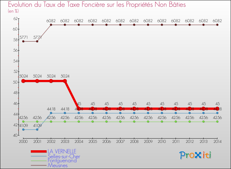Pendant la même période, les communes françaises similaires à La Vernelle, ont vu leur taux de taxe foncière sur le non bâti augmenter de 24.79 % en moyenne entre 2000 et 2014.