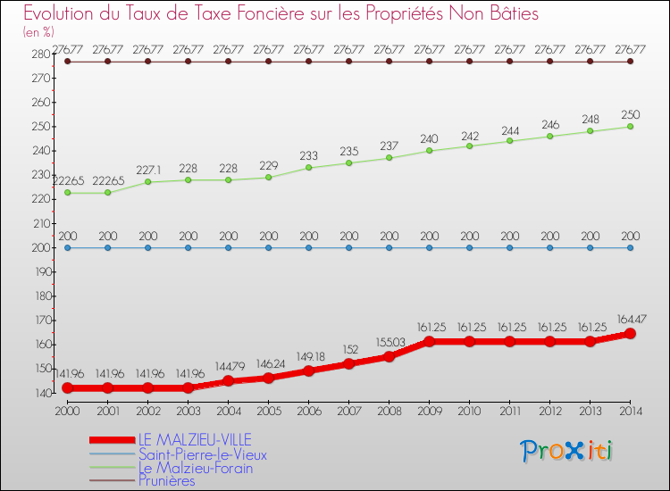 A Le Malzieu-Ville, le taux de taxe foncière sur le non bâti a ainsi augmenté de 15.86 % entre 2000 et 2014.
