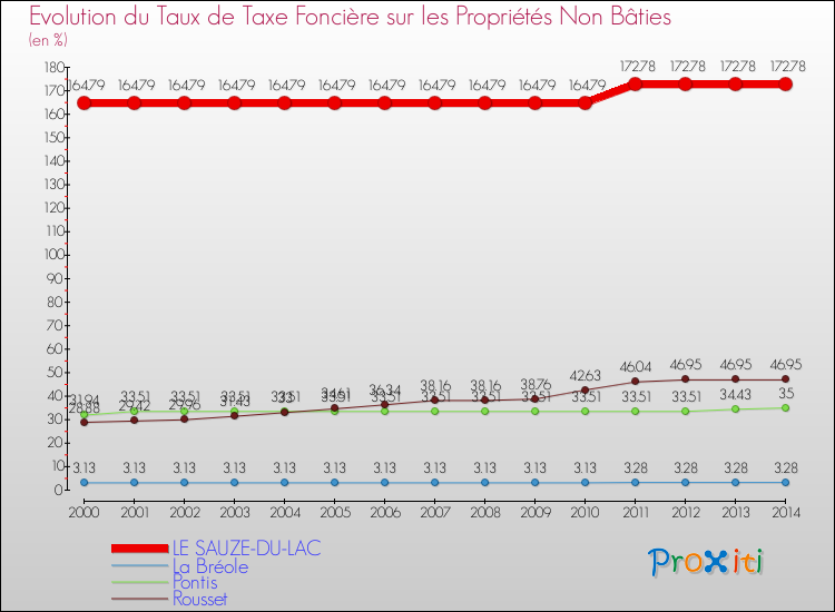 A Le Sauze-du-Lac, le taux de taxe foncière sur le non bâti a ainsi augmenté de 4.85 % entre 2000 et 2014.