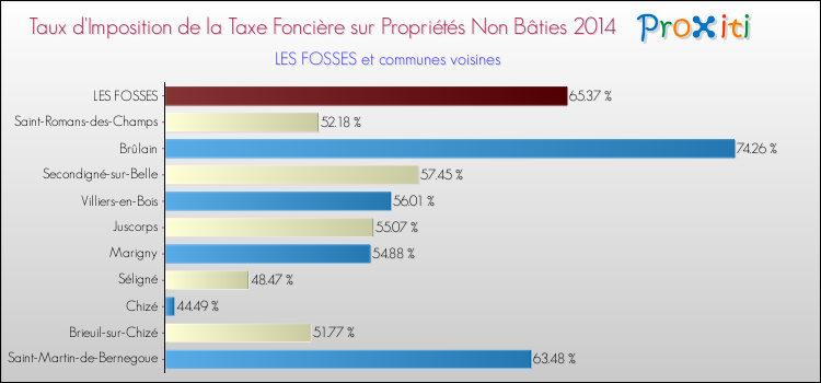 A Les Fosses, le taux de la taxe foncière sur le non bâti est donc plus élevé de 64.54 % que pour des communes similaires.