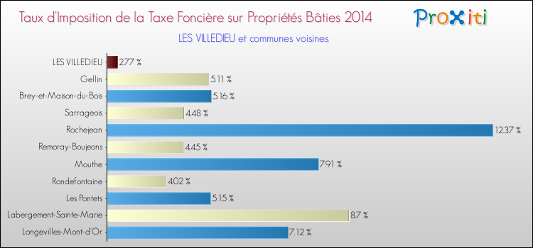 A noter : la valeur moyenne de ce taux de taxe foncière sur le bâti dans les communes françaises similaires à Les Villedieu était de 10.03 %, en 2014.