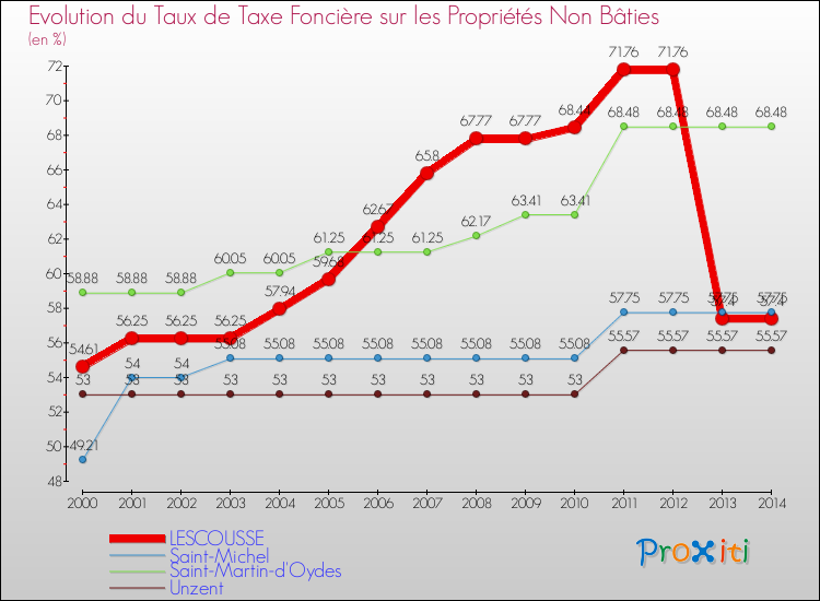 A Lescousse, le taux de taxe foncière sur le non bâti a ainsi augmenté de 5.11 % entre 2000 et 2014.