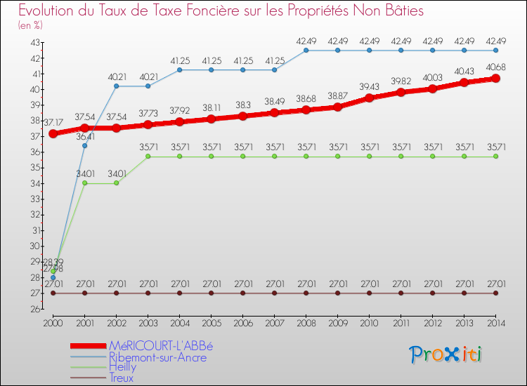 Pendant la même période, les communes françaises similaires à Méricourt-l'Abbé, ont vu leur taux de taxe foncière sur le non bâti augmenter de 33.22 % en moyenne entre 2000 et 2014.