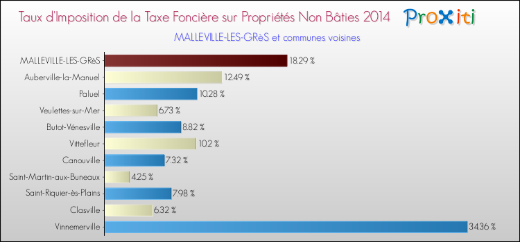 En 2014, le taux de la taxe foncière sur le non bâti vôté par le conseil municipal de Malleville-les-Grès était de : 18.29 %.