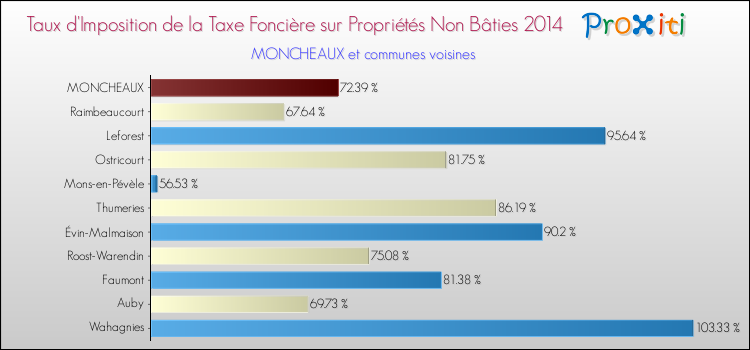 A Moncheaux, le taux de taxe foncière sur le non bâti a ainsi augmenté de 30.29 % entre 2000 et 2014.