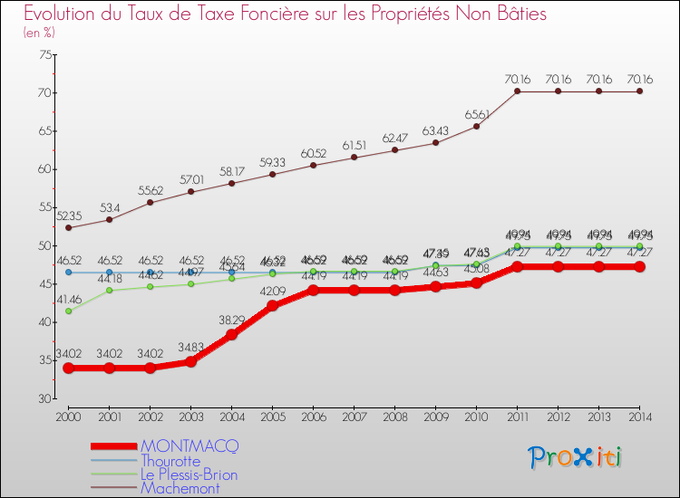A Montmacq, le taux de taxe foncière sur le non bâti a ainsi augmenté de 38.95 % entre 2000 et 2014.