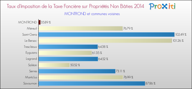 A Montrond, le taux de la taxe foncière sur le non bâti est donc plus élevé de 46.01 % que pour des communes similaires.