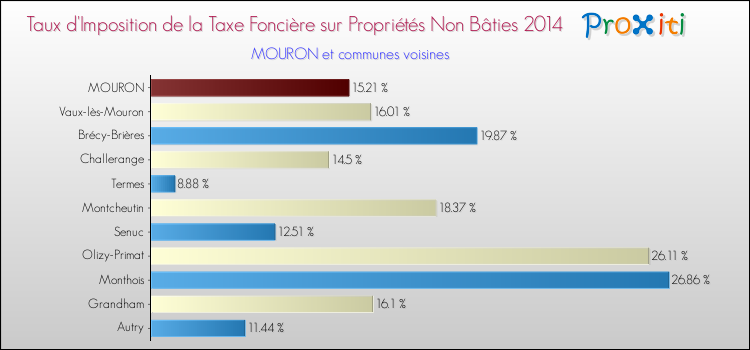 A Mouron, le taux de taxe foncière sur le non bâti a ainsi augmenté de 10.06 % entre 2000 et 2014.