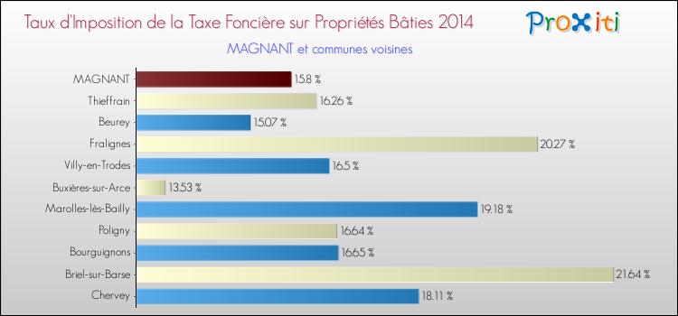 A noter : la valeur moyenne de ce taux de taxe foncière sur le bâti dans les communes françaises similaires à Magnant était de 10.03 %, en 2014.