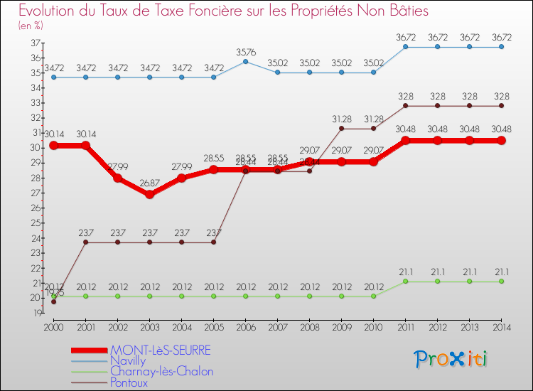 A Mont-lès-Seurre, le taux de taxe foncière sur le non bâti a ainsi augmenté de 1.13 % entre 2000 et 2014.