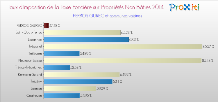 En 2014, le taux de la taxe foncière sur le non bâti vôté par le conseil municipal de Perros-Guirec était de : 47.18 %.