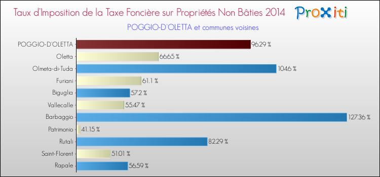 A Poggio-d'Oletta, le taux de la taxe foncière sur le non bâti est donc plus élevé de 291.74 % que pour des communes similaires.