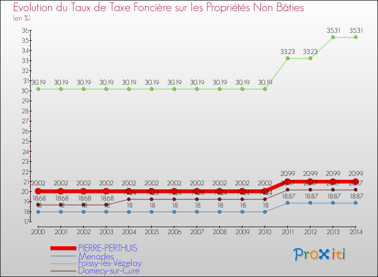 A Pierre-Perthuis, le taux de taxe foncière sur le non bâti a ainsi augmenté de 4.85 % entre 2000 et 2014.