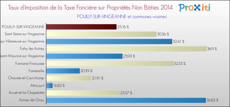 En 2014, le taux de la taxe foncière sur le non bâti vôté par le conseil municipal de Pouilly-sur-Vingeanne était de : 25.16 %.