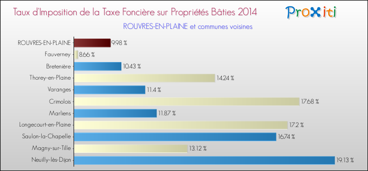 A noter : la valeur moyenne de ce taux de taxe foncière sur le bâti dans les communes françaises similaires à Rouvres-en-Plaine était de 13.56 %, en 2014.