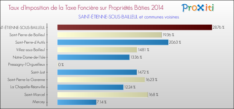 En 2014, le taux de la taxe foncière sur le bâti vôté par le conseil municipal de Saint-Étienne-sous-Bailleul était de : 28.76 %.