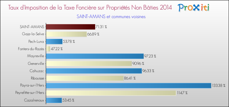 En 2014, le taux de la taxe foncière sur le non bâti vôté par le conseil municipal de Saint-Amans était de : 71.31 %.
