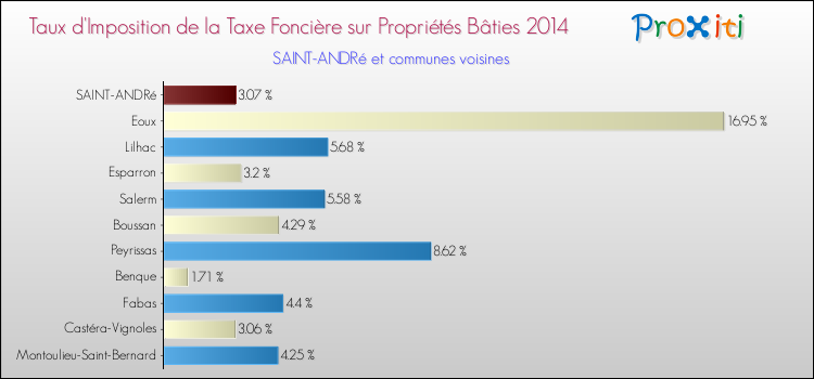 A noter : la valeur moyenne de ce taux de taxe foncière sur le bâti dans les communes françaises similaires à Saint-André était de 13.44 %, en 2014.