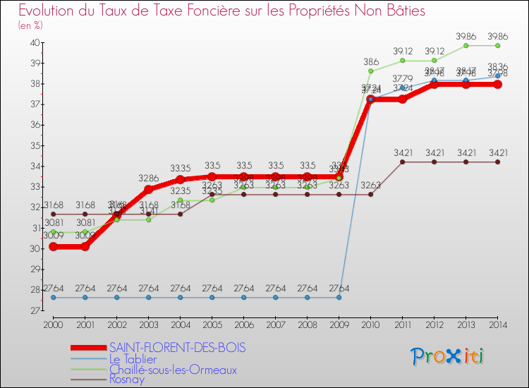 A Saint-Florent-des-Bois, le taux de taxe foncière sur le non bâti a ainsi augmenté de 26.22 % entre 2000 et 2014.