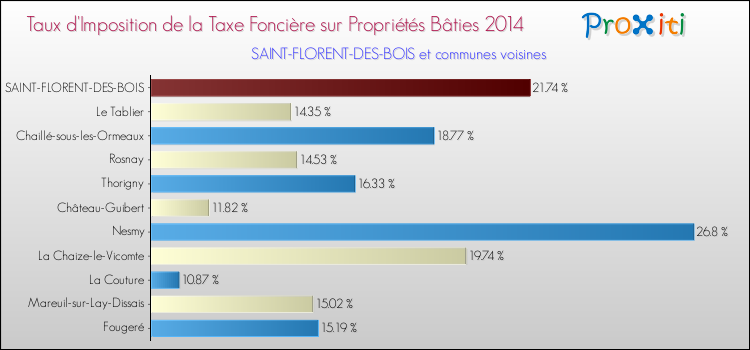 En 2014, le taux de la taxe foncière sur le bâti vôté par le conseil municipal de Saint-Florent-des-Bois était de : 21.74 %.