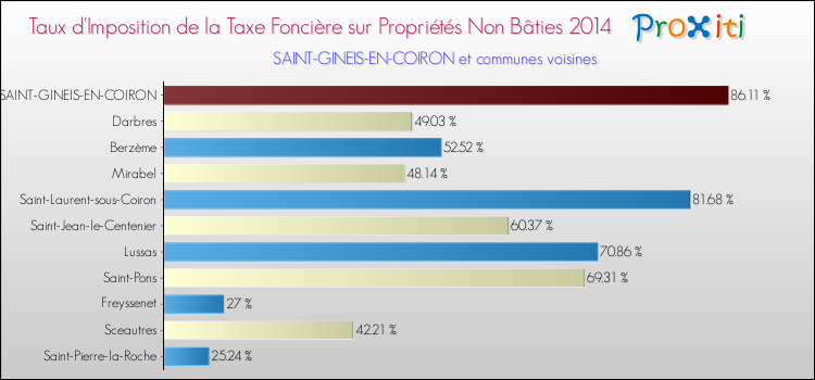 A Saint-Gineis-en-Coiron, le taux de la taxe foncière sur le non bâti est donc plus élevé de 250.33 % que pour des communes similaires.