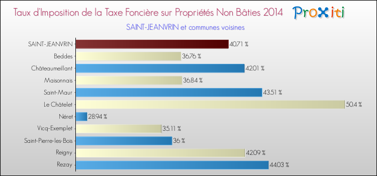 Comparaison des taux d'imposition de la taxe foncière sur les immeubles et terrains non batis 2014 pour SAINT-JEANVRIN et les communes voisines