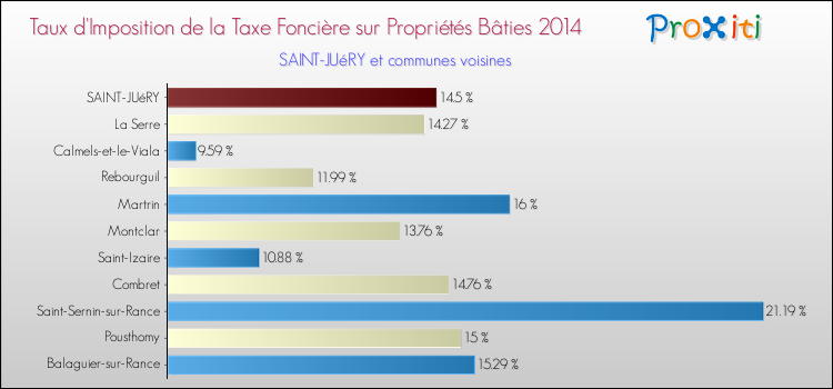 En 2014, le taux de la taxe foncière sur le bâti vôté par le conseil municipal de Saint-Juéry était de : 14.5 %.