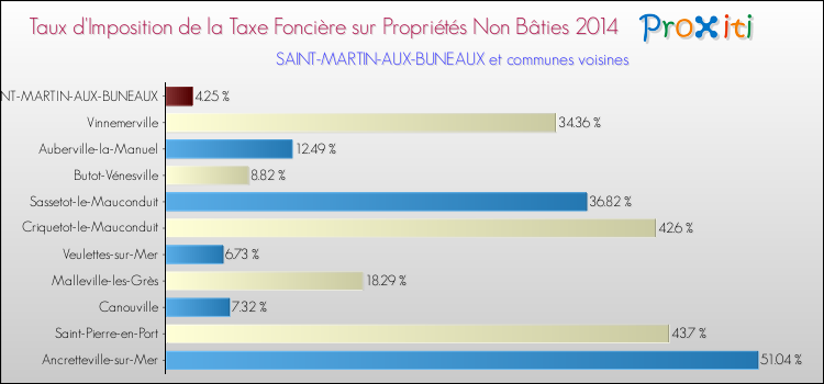 A Saint-Martin-aux-Buneaux, le taux de taxe foncière sur le non bâti a ainsi augmenté de 185.23 % entre 2000 et 2014.