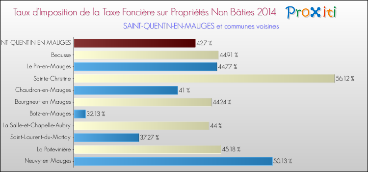 A noter : la valeur moyenne de ce taux de taxe foncière sur le non bâti dans les communes françaises similaires à Saint-Quentin-en-Mauges était de 45.16 %, en 2014.