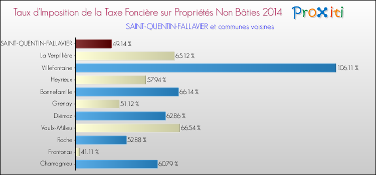 Comparaison des taux d'imposition de la taxe foncière sur les immeubles et terrains non batis 2014 pour SAINT-QUENTIN-FALLAVIER et les communes voisines