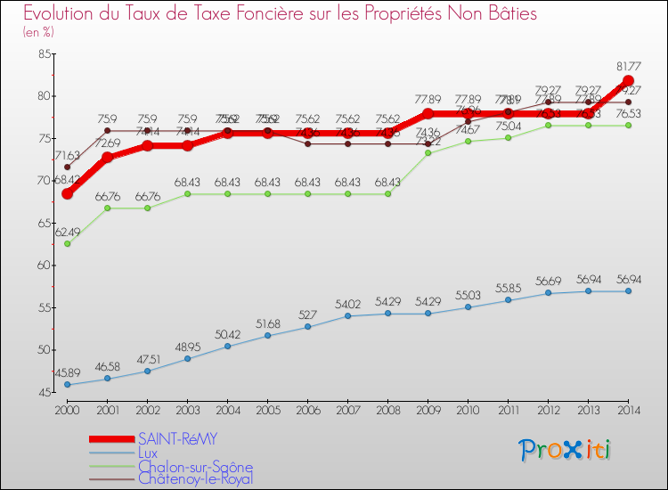 Pendant la même période, les communes françaises similaires à Saint-Rémy, ont vu leur taux de taxe foncière sur le non bâti augmenter de 22.74 % en moyenne entre 2000 et 2014.