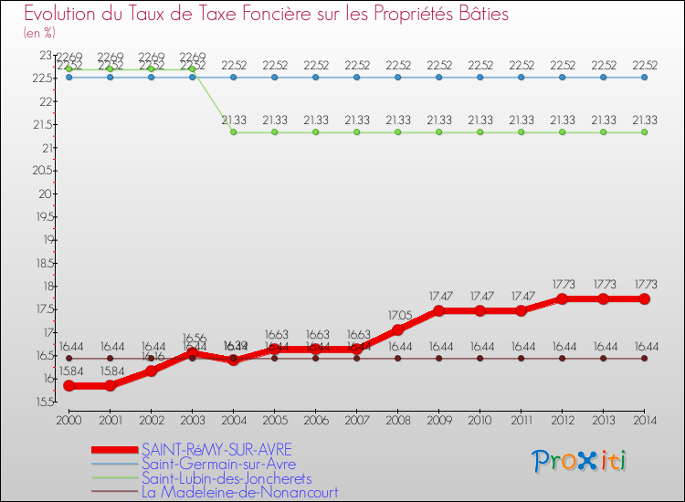 Pendant la même période, les communes françaises similaires à Saint-Rémy-sur-Avre, ont vu leur taux de taxe foncière sur le bâti augmenter de 22.28 % en moyenne entre 2000 et 2014.