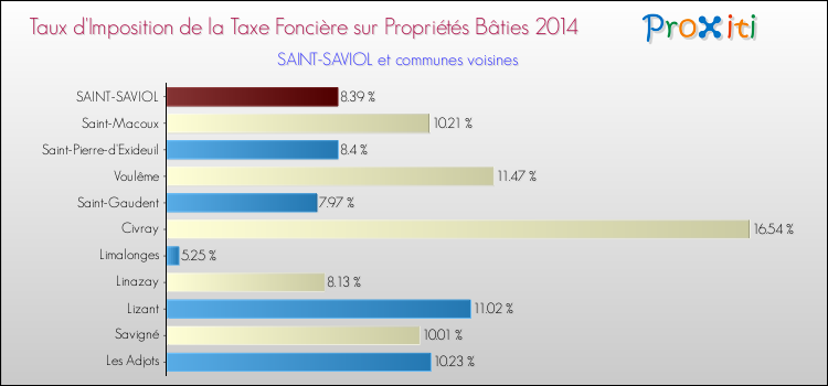 Comparaison des taux d'imposition de la taxe foncière sur le bati 2014 pour SAINT-SAVIOL et les communes voisines