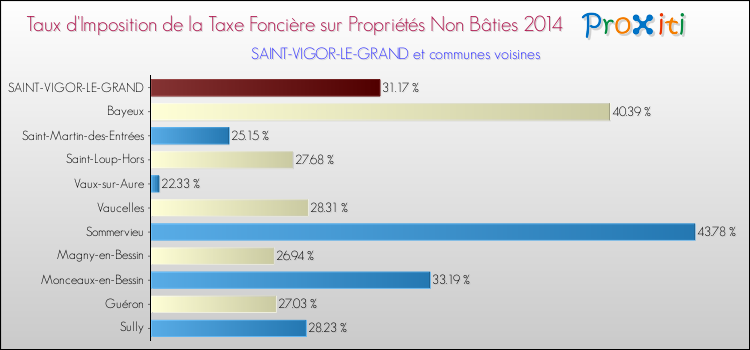 A Saint-Vigor-le-Grand, le taux de la taxe foncière sur le non bâti est donc moins élevé de 38.79 % que pour des communes similaires.
