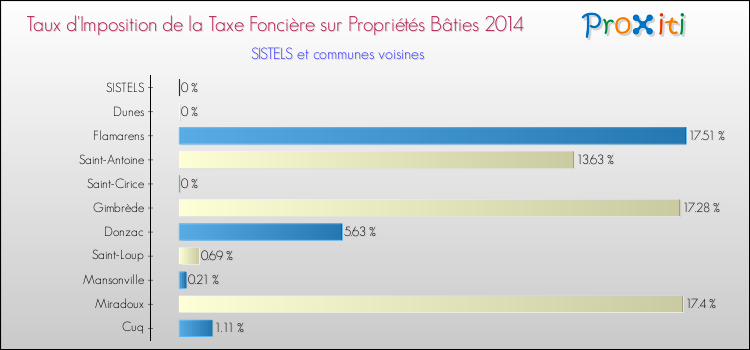 A noter : la valeur moyenne de ce taux de taxe foncière sur le bâti dans les communes françaises similaires à Sistels était de 10.03 %, en 2014.