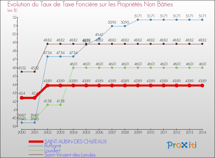 A Saint-Aubin-des-Châteaux, le taux de taxe foncière sur le non bâti a ainsi augmenté de 3.51 % entre 2000 et 2014.
