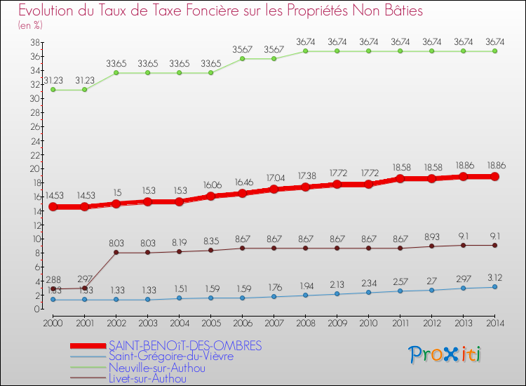 A Saint-Benoît-des-Ombres, le taux de taxe foncière sur le non bâti a ainsi augmenté de 29.8 % entre 2000 et 2014.