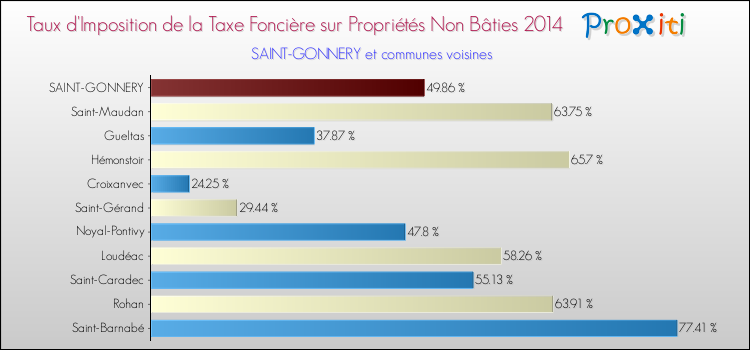 En 2014, le taux de la taxe foncière sur le non bâti vôté par le conseil municipal de Saint-Gonnery était de : 49.86 %.