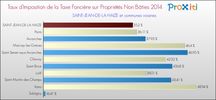 A noter : la valeur moyenne de ce taux de taxe foncière sur le non bâti dans les communes françaises similaires à Saint-Jean-de-la-Haize était de 45.16 %, en 2014.
