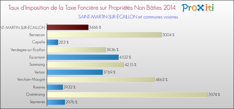 En 2014, le taux de la taxe foncière sur le non bâti vôté par le conseil municipal de Saint-Martin-sur-Écaillon était de : 34.66 %.