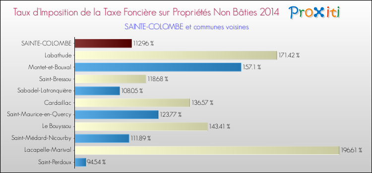 En 2014, le taux de la taxe foncière sur le non bâti vôté par le conseil municipal de Sainte-Colombe était de : 112.96 %.