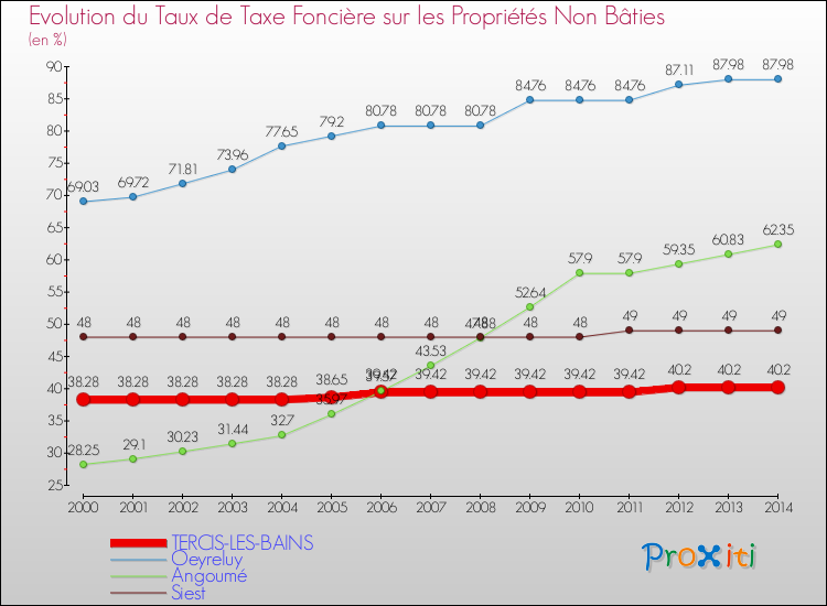 A Tercis-les-Bains, le taux de taxe foncière sur le non bâti a ainsi augmenté de 5.02 % entre 2000 et 2014.